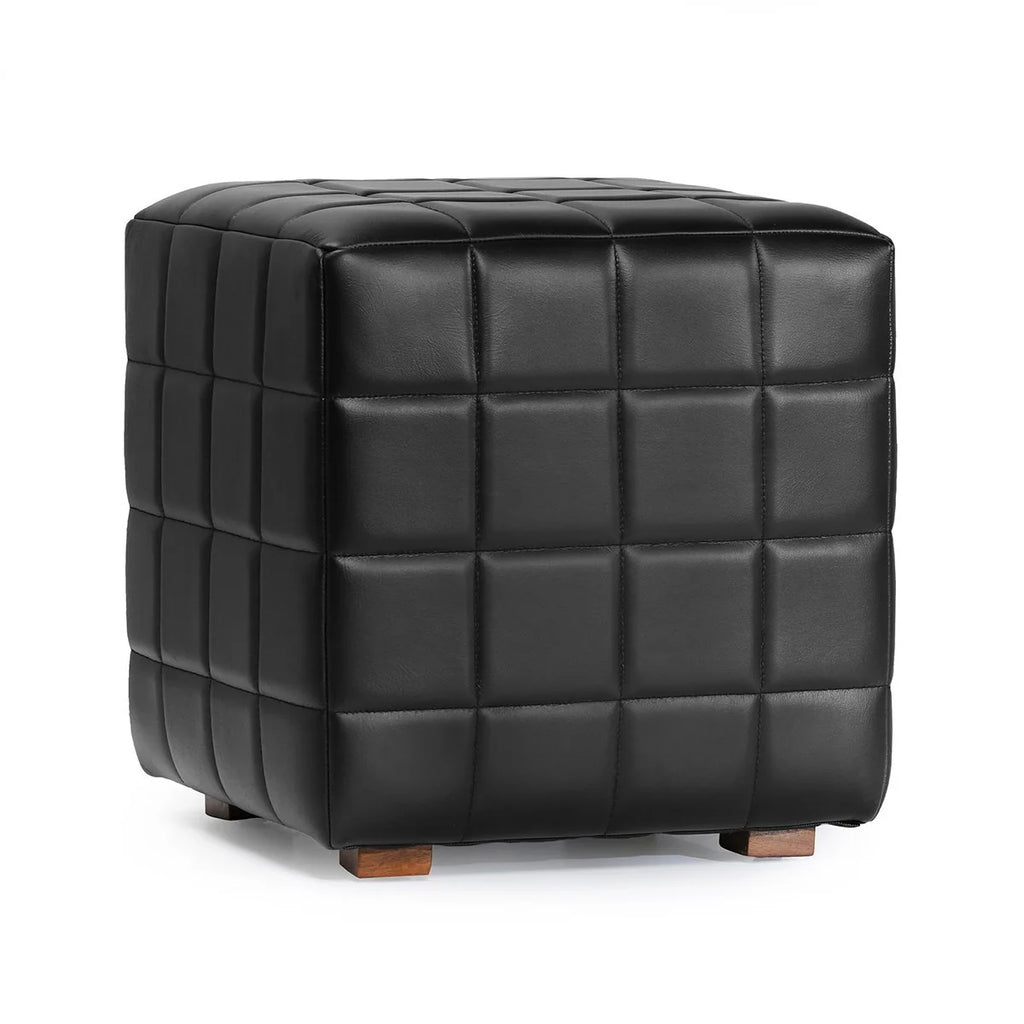 Black Leather Square Ottoman